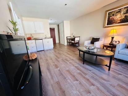 Our studio suites range from 275-450 sq. ft. and some include kitchenettes with space for a mini fridge and microwave. One-bedroom suites range from 500-750 sq. ft. and come with kitchenettes and abundant storage. All accommodations are equipped with individual thermostat-controlled radiant heating, ensuring comfort year-round.